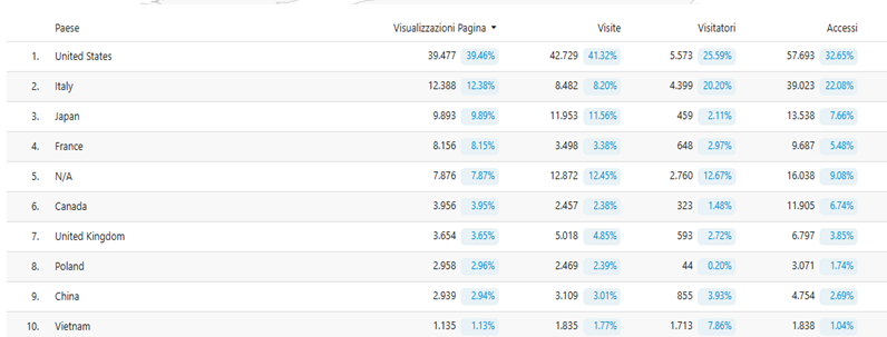 Trimestre 2026. Pagine visitate, Visite, Visitatori e